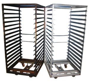 Zo kost het reinigen van een ovenwagen voor platen 800×600 ongeveer zestig euro, terwijl het aanschaffen van een nieuwe ovenwagen al ruim tien keer duurder is. Selles: ‘Het loont dan al snel om de optie van grondig reinigen te overwegen.’