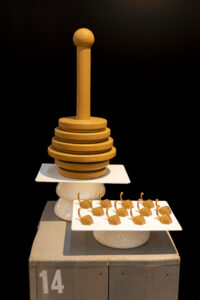 Daan mocht als winnaar van vorig jaar de uitslag bekend maken en na als een volwaardig quizmaster om tromgeroffel gevraagd te hebben, kon hij Nina van Galen van Bontom de trofee overhandigen. Met een bonbon genaamd ‘De Honinglepel’. Met een rijke laag honing, licht gekruid en iets frisser gemaakt door toevoeging van citroen-zeste, macadamia praline en met honing gekarameliseerde rice crispies, was dit de winnende bonbon.