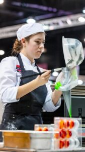 Zo sleepte Elisa Vriendjes van het ROC van Amsterdam (MBO College Centrum) brons in de wacht in de categorie Patissier. Docenten en medewerkers van het ROC zijn trots op de talentvolle patissier in spe.