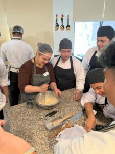 De school bevond zich in een levendige stad, in een regio waar de voedingsmiddelenindustrie volop in ontwikkeling is. De studenten volgden een intensieve opleiding tot hospitality professional en vielen op door hun nieuwsgierigheid, leergierigheid en gastvrijheid. Samen met een lokale docent combineerde ik gedurende twee weken theorie en praktijk. We werkten aan basisrecepturen, productkwaliteit en procesbeheersing, maar besteedden ook aandacht aan hygiëne, grondstofkennis en presentatie.